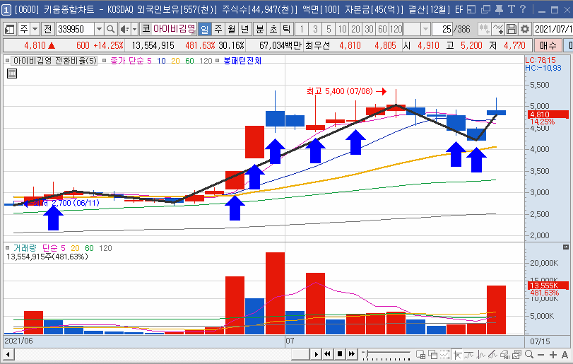 왜냐구요? 모든 주식은 관성력과 회귀성이 있습니다. 풀이하면 상승 추세를 타면 상승하는 관성에 의해서 계속 상승하려 하며, 회귀성은 주식이 너무많이 오르면 다시 이동평균선 지점으로 돌아 가려는 회귀성을 가지기 때문입니다.