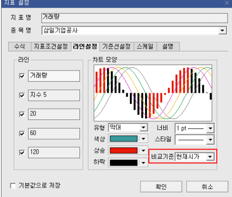 먼저 거래량에 대해서 [현재시가] 기준으로 세팅합니다.