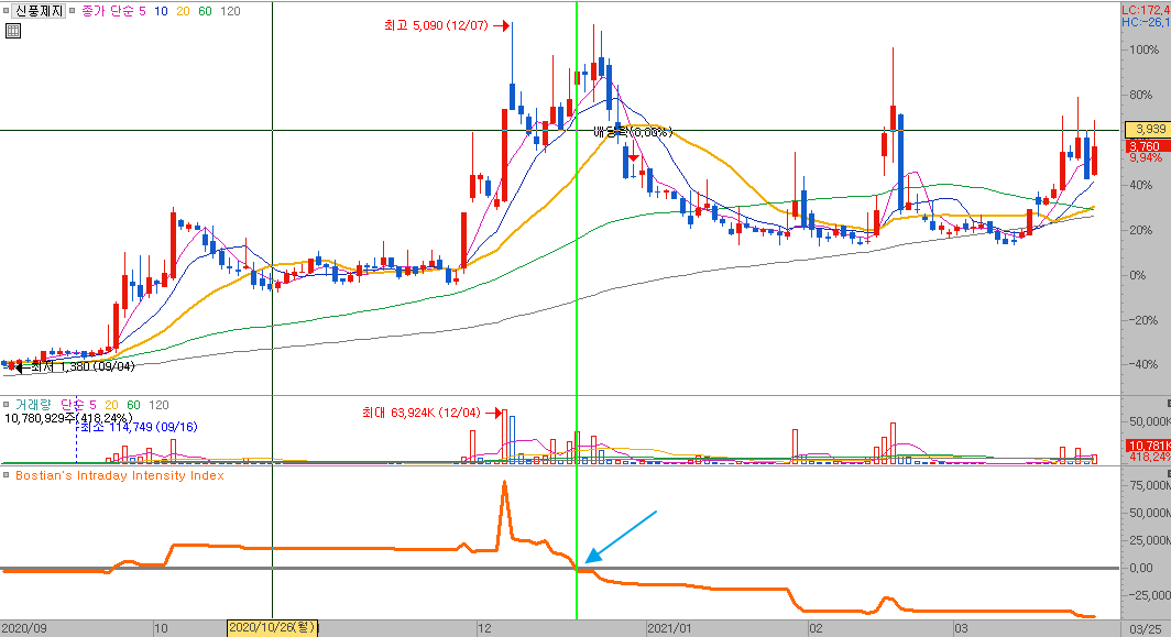 여러분 여기서 0선을 넘어가면서 BII의 기울기가 급격히 증가하면 세력이 들어 왔거나 세력이 주가를 올리기 시작한다는는 점 입니다. 명심하세요.