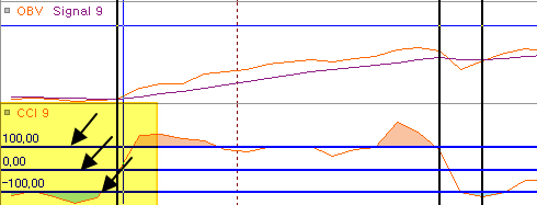 2. 이번을 보시면 OBV가 Signal 9선 위에 있으면서 동시에 CCI -100 선을 돌파 합니다. 매수 시점