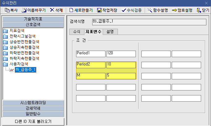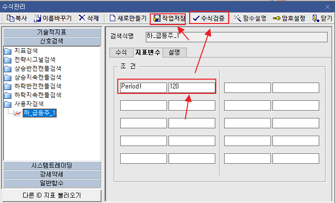 수식 관리자에서 우리는 바닥권 급증주 신호 검색이므로 신호검색으로 들어 갑니다.