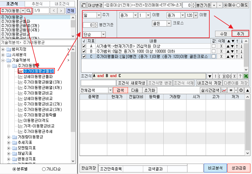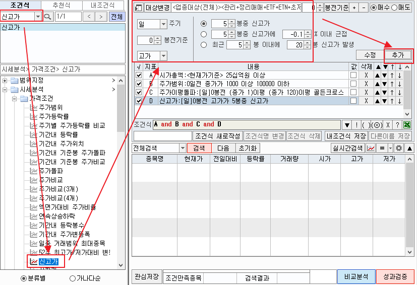 아울러 이전에 소개했던 이 조건검색기의 신호검색식도 아래와 같이 공유합니다.