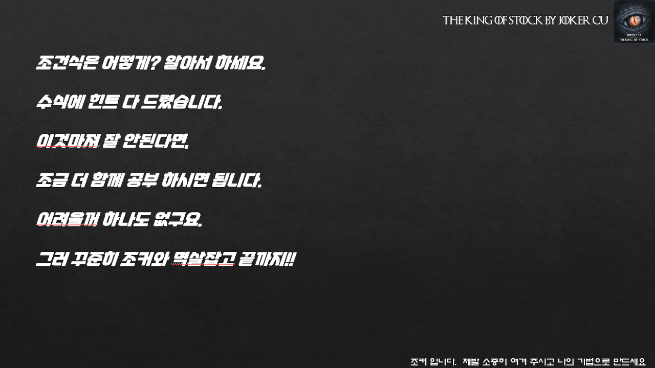 조커와 함께하는 주식 공부방 입니다. 포기하지 말고 끝까지!!