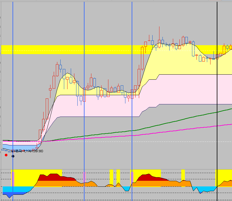 사실 컴앞에 없어도 휴대폰으로 수익을 볼 수 있는 지표죠. 일단 자작 지표 설명 이후에 휴대폰 연동 시킨 것도 보여 드리겠습니다. 이제부터 아무것도 필요 없습니다.
