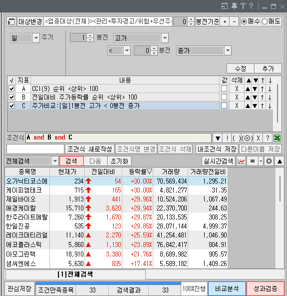 - 여러분 CCI가 얼마나 민감한 지표인줄 아십니까? 민감한 놈들 순위 매겨서 100종목 줄 세운 겁니다.