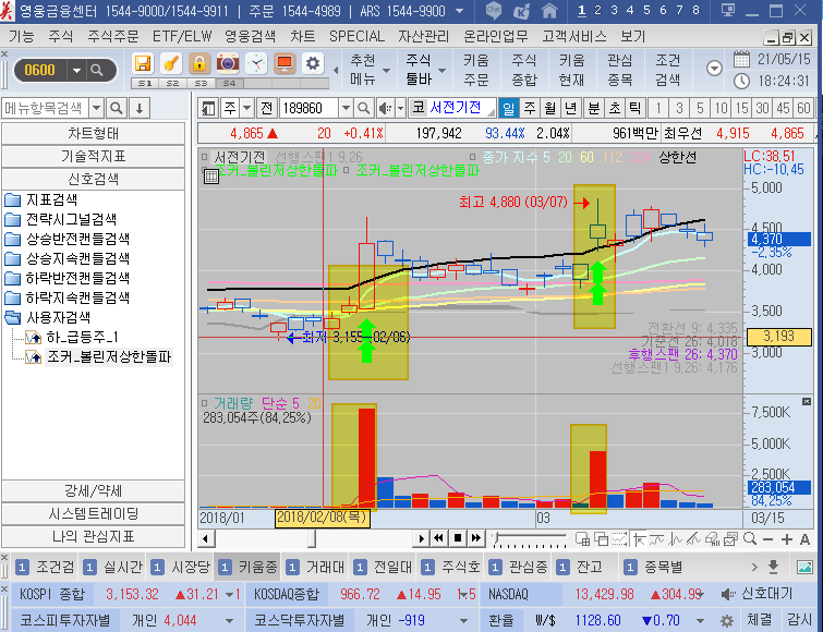 그만큼 보수적이며, 안전하단 이야기 입니다. 스윙에 적합한 신호 검색기 입니다.