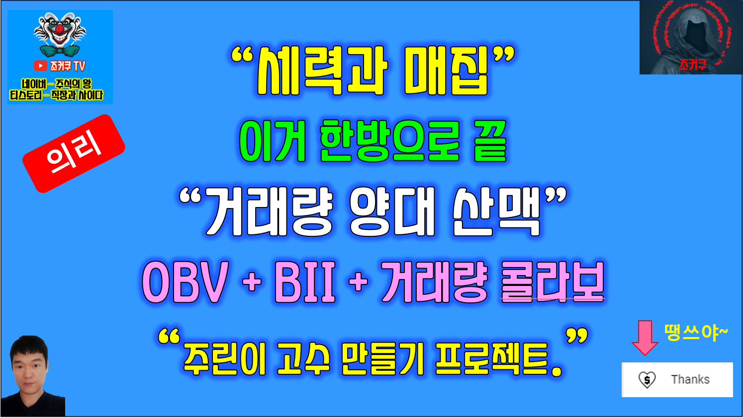 본 유투브 강좌는 주 2회 업데이트되며 다음주 추천종목 (급등/돌파/눌림) 1회와 기법설명 1회로 노하우를 공개합니다.어디에서도 이런 강좌형태의 지식기부 유투버는 없다고 자부합니다. 꾸준히 자주 들으시길 추천 드립니다.추후 회원제를 통하여 저세상 "조건식"과 "수식"강좌도 업데이트될 예정이오니 많은 성원 부탁드립니다.[진심 주식공부하고 싶으신분 링크 남깁니다.] ▶▶네이버 주식의왕 [클릭] ▶▶유투브 조커쿠TV [클릭]