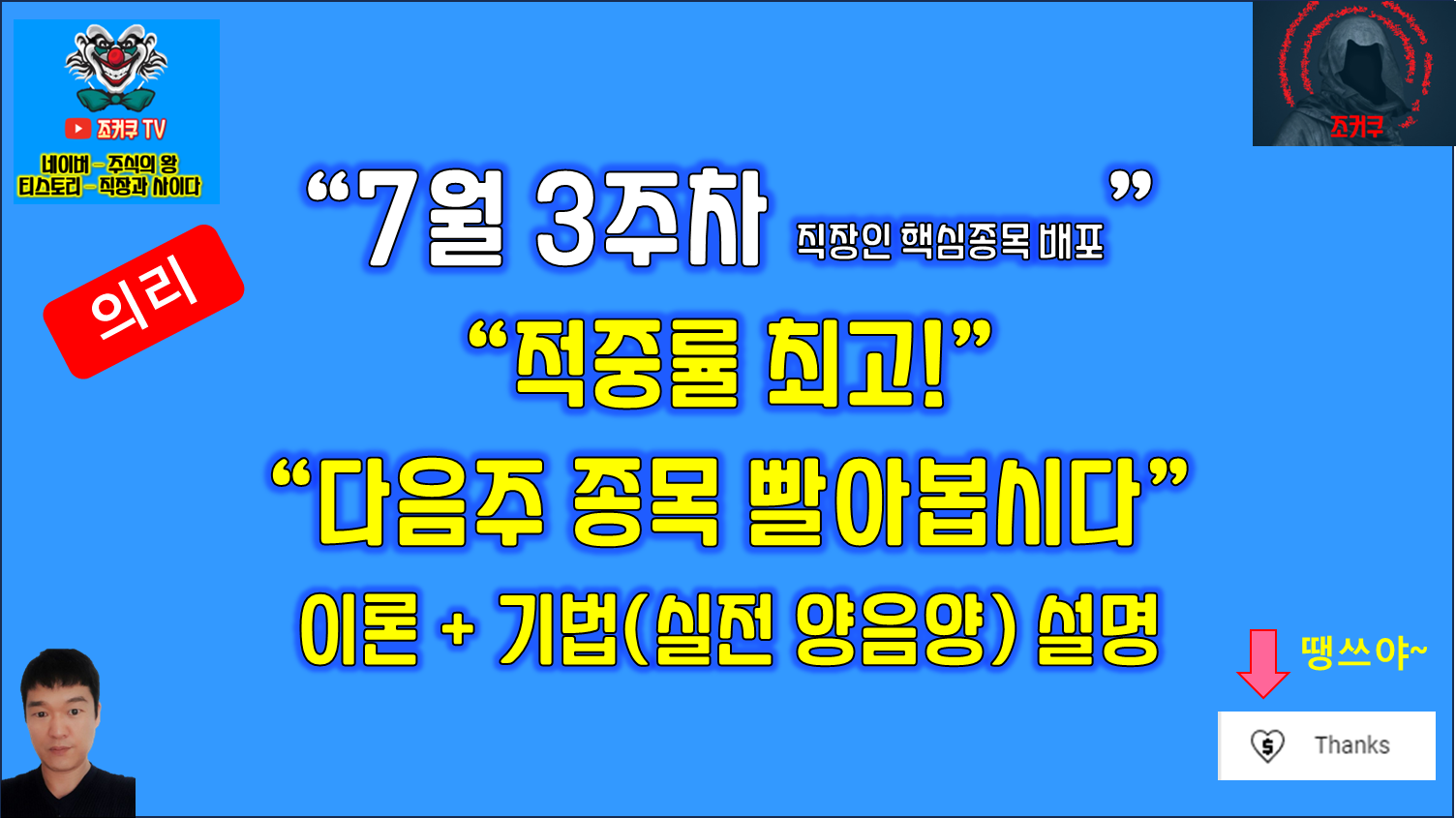 [조커쿠TV-주식강좌] 7월3주용 실전 양음양기법, 급등종목, 추격종목, 직장인매매 종목, 이론+기법설명