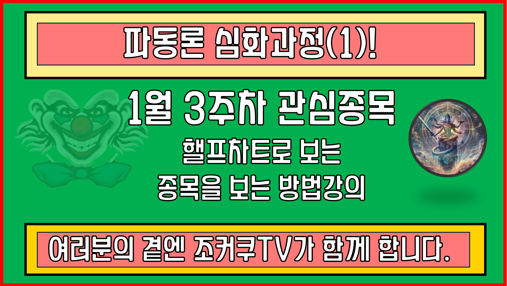 본 유투브 강좌는 주 2회 업데이트되며 다음주 추천종목 (급등/돌파/눌림) 1회와 기법설명 1회로 노하우를 공개합니다.어디에서도 이런 강좌형태의 지식기부 유투버는 없다고 자부합니다. 꾸준히 자주 들으시길 추천 드립니다.추후 회원제를 통하여 저세상 "조건식"과 "수식"강좌도 업데이트될 예정이오니 많은 성원 부탁드립니다.[진심 주식공부하고 싶으신분 링크 남깁니다.] ▶▶네이버 주식의왕 [클릭] ▶▶유투브 조커쿠TV [클릭]