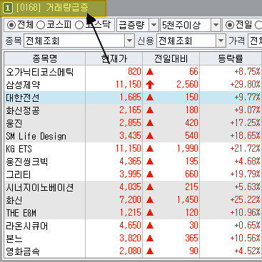 3. 그럼 이제 "0168" 거래량급증 을 오픈 합니다.