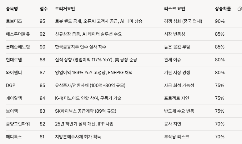 그래서 쿠형의 경우는 조건식으로 타점에 맞는 종목을 찾고, 그 종목을 Ai를 통하여 상승 가능성에 대해서 묻고 있습니다.